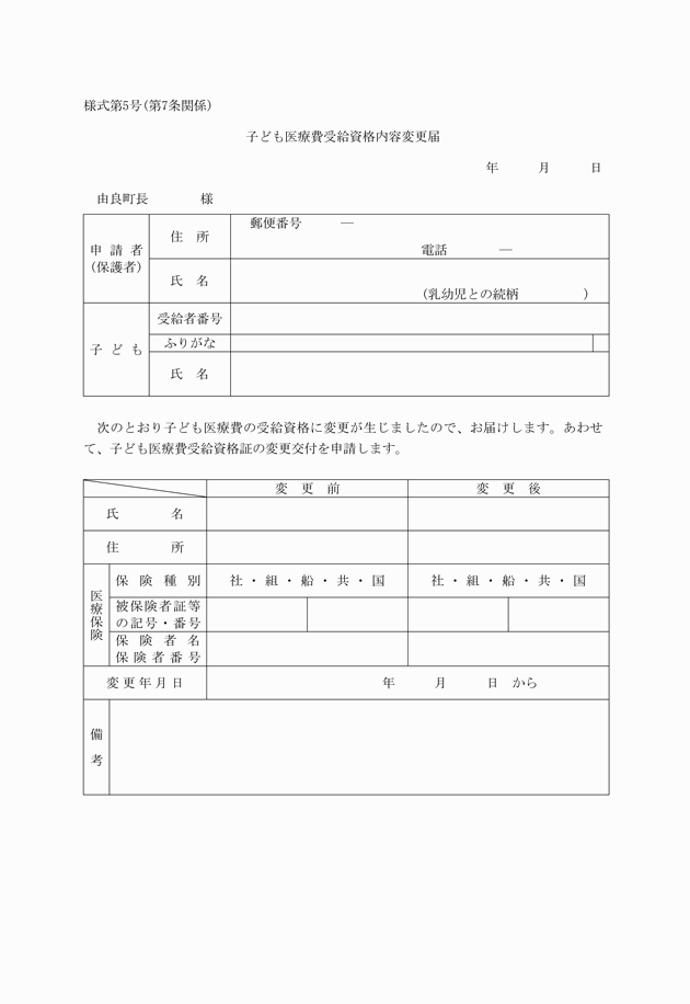 2 受給資格証を破損し、又は亡失したときは、子ども医療費受給資格証再交付申請書(様式第3号)を町長に提出し、再交付を受けるものとする。