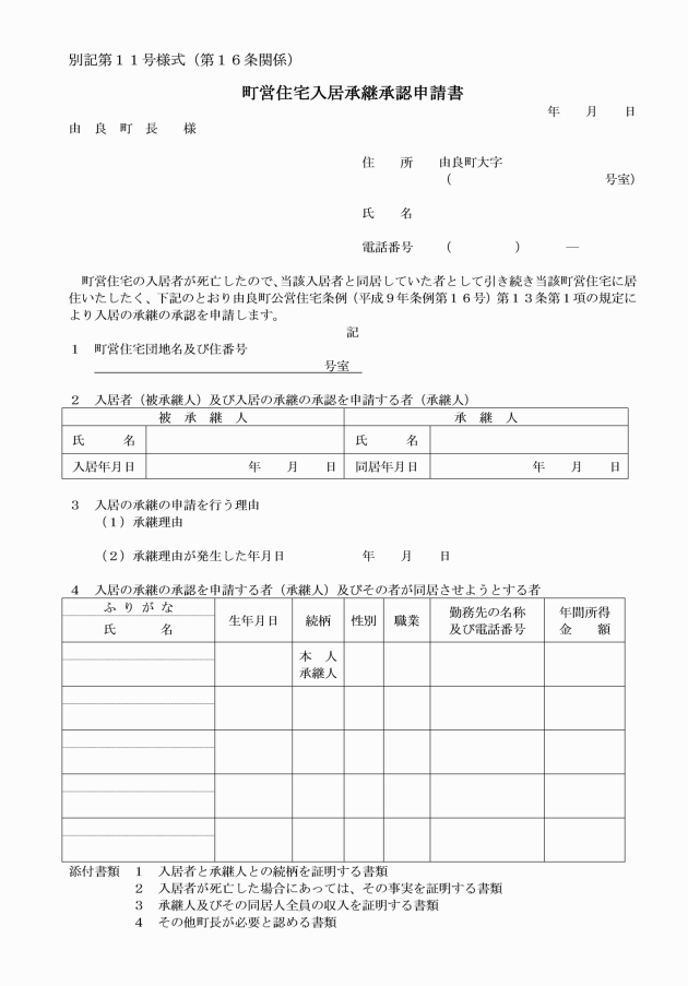 2 前項の町営住宅入居承継承認申請書には、次に掲げる書類を添付しなければならない。
