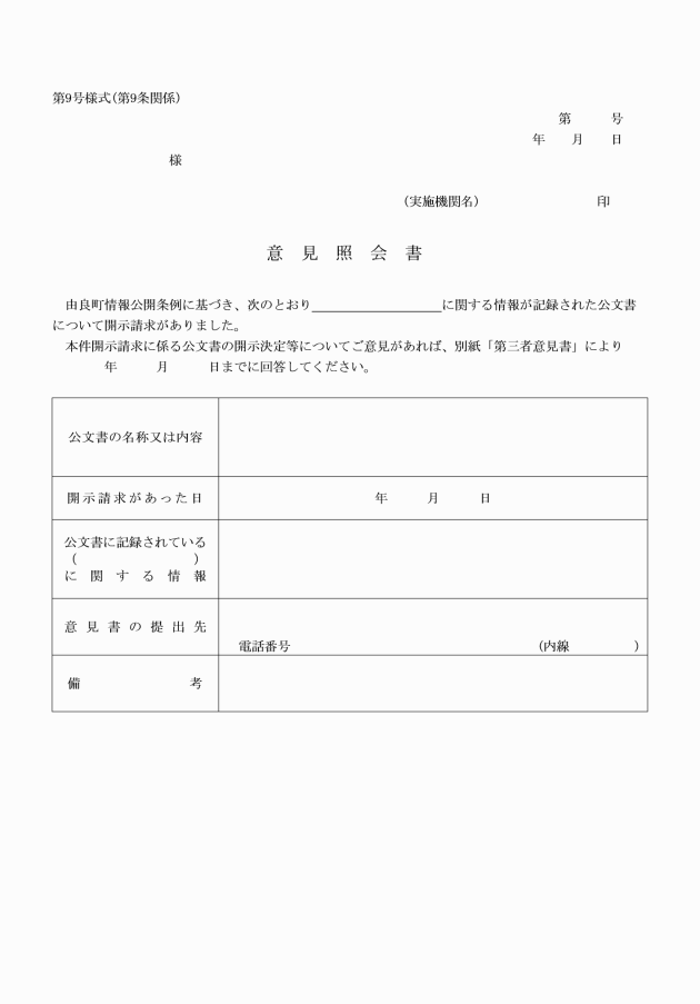 (2) 由良町情報公開審査会に諮問するとき 審査請求諮問書(第13号様式)
