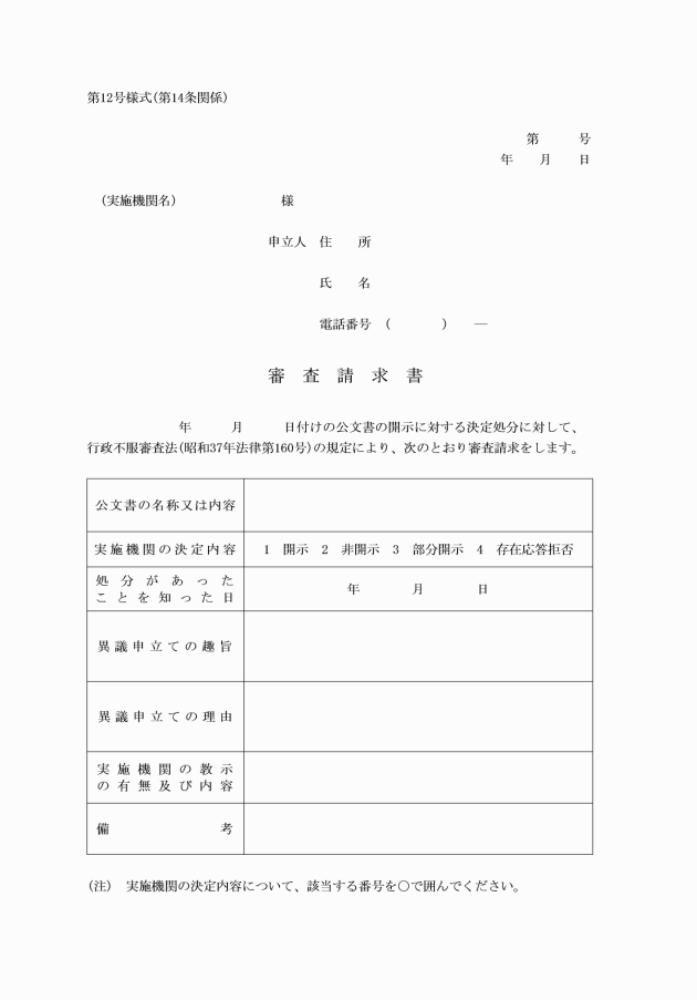 (1) 審査請求をするとき 審査請求書(第12号様式)
