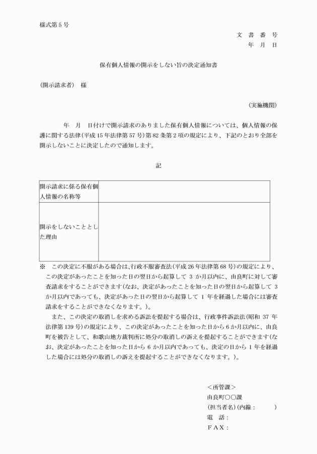 5 | 保有個人情報の開示をしない旨の決定通知書(様式第5号) |